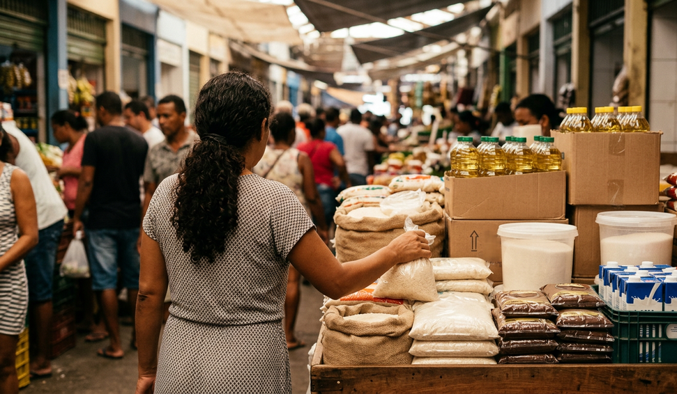 Levantamento divulgado nesta segunda-feira (9) pela Companhia Nacional de Abastecimento (Conab) e pelo Departamento Intersindical de Estatística e Estudos Socioeconômicos (Dieese) revela que cinco produtos da cesta básica — óleo de soja, açúcar, café em pó, arroz e leite integral — apresentaram queda de preços em grande parte das capitais brasileiras no mês de fevereiro de 2026.