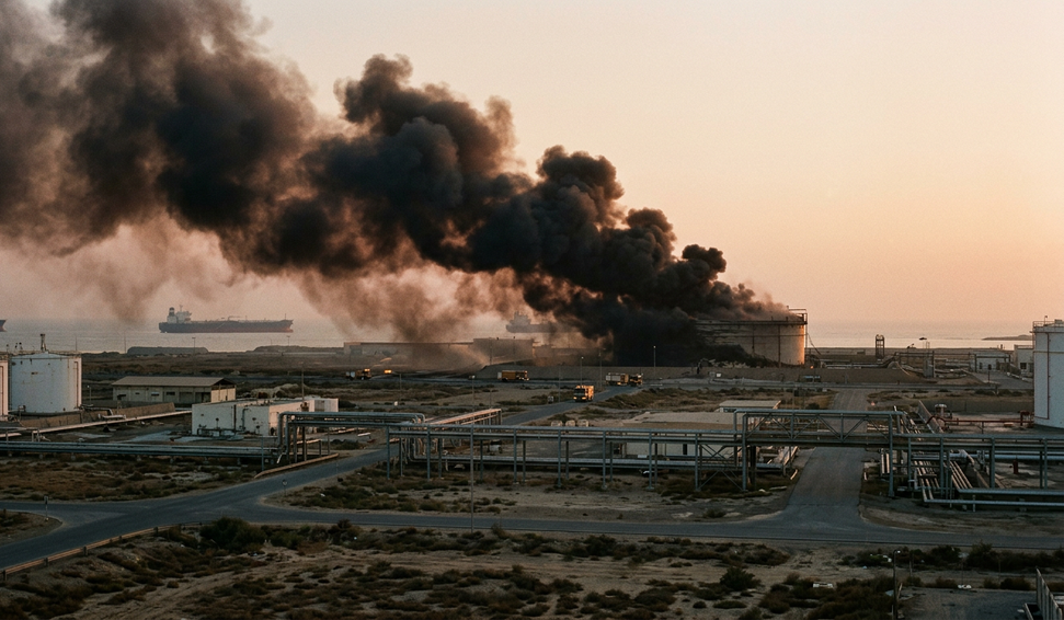 O porto de petróleo de Al Fujairah, nos Emirados Árabes Unidos, voltou a ser incendiado após um novo ataque de drones. Segundo a mídia local, o terminal havia restabelecido suas operações ontem (13), após ataques anteriores, mas foi atingido novamente nesta quarta-feira. As autoridades ainda avaliam os danos e reforçam medidas de segurança na região.