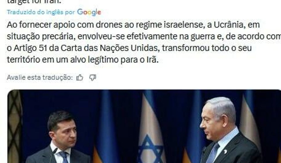 De acordo com Azizi, esse posicionamento faz com que todo o território ucraniano passe a ser considerado um alvo legítimo para o Irão, conforme previsto pelo Artigo 51 da Carta das Nações Unidas.