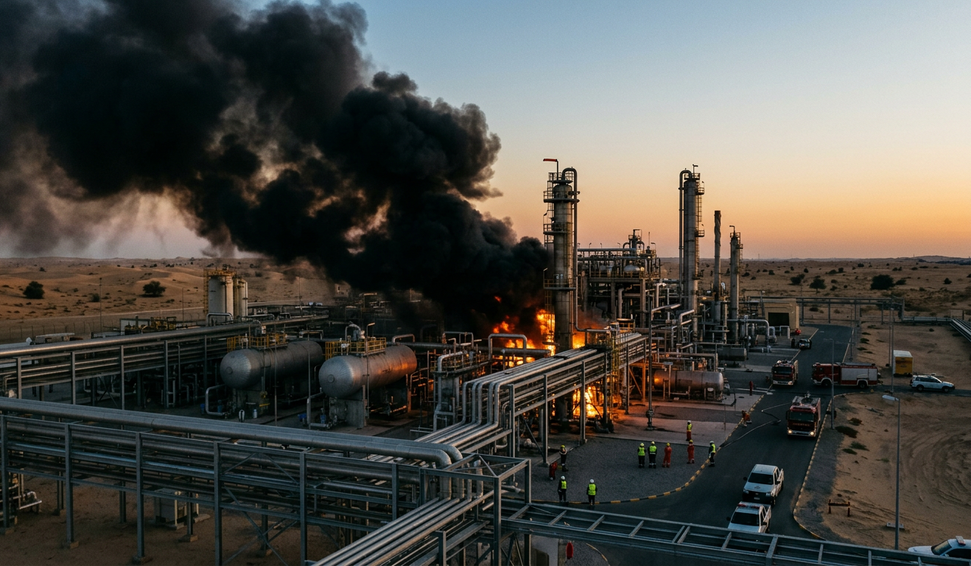 Incêndio atinge campo de Shah; autoridades avaliam danos e suspendem operações. Região enfrenta onda de ataques com drones e mísseis.