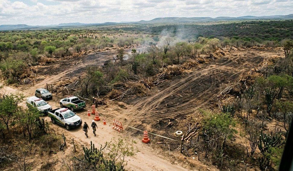 A Operação Caatinga Resiste identificou 10.434 hectares de desmatamento ilegal no semiárido brasileiro, sem autorização para supressão de vegetação, distribuídos por nove estados, segundo balanço preliminar apresentado na manhã desta sexta-feira (20/03), durante coletiva de imprensa realizada em Aracajú (SE). A ação foi realizada entre os dias 9 e 19 de março de 2026 e mobilizou Ministérios Públicos, órgãos ambientais e forças policiais de Alagoas, Bahia, Ceará, Minas Gerais, Paraíba, Pernambuco, Piauí, Rio Grande do Norte e Sergipe.