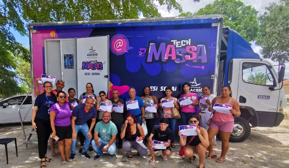 Levando aulas diretamente aos bairros por meio de dois caminhões-escola, o Tech Massa oferece cursos gratuitos como informática básica, empreendedorismo, Inteligência Artificial aplicada aos negócios e capacitação em plataforma Canva. As aulas são adaptadas às necessidades de cada região de Maceió, ampliando o acesso à formação tecnológica de maneira descentralizada.