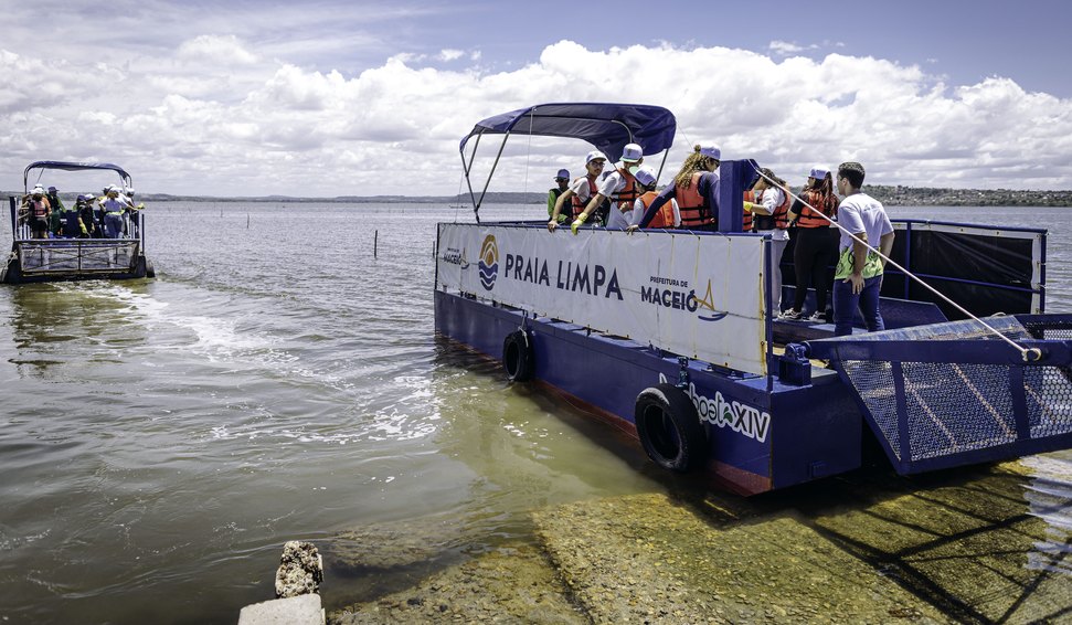 A última visita foi ao Instituto Brasileiro de Desenvolvimento e Sustentabilidade (IABS), no Vergel do Lago. Lá, os estudantes conheceram iniciativas de reaproveitamento das cascas de sururu e os Ecoboats, catamarãs utilizados pela Prefeitura para a limpeza da superfície da Lagoa Mundaú.