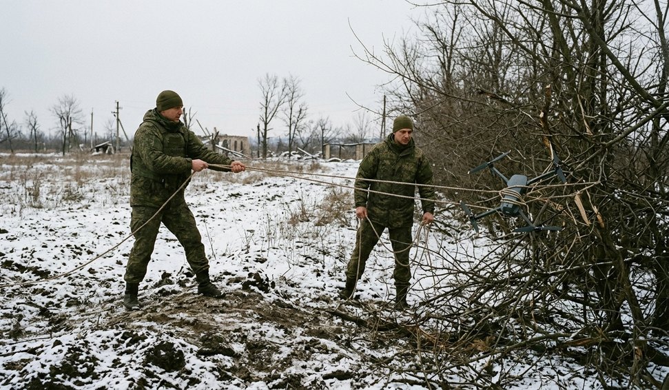 Tática inusitada: operadores russos capturam drones ucranianos no Donbass com cordas