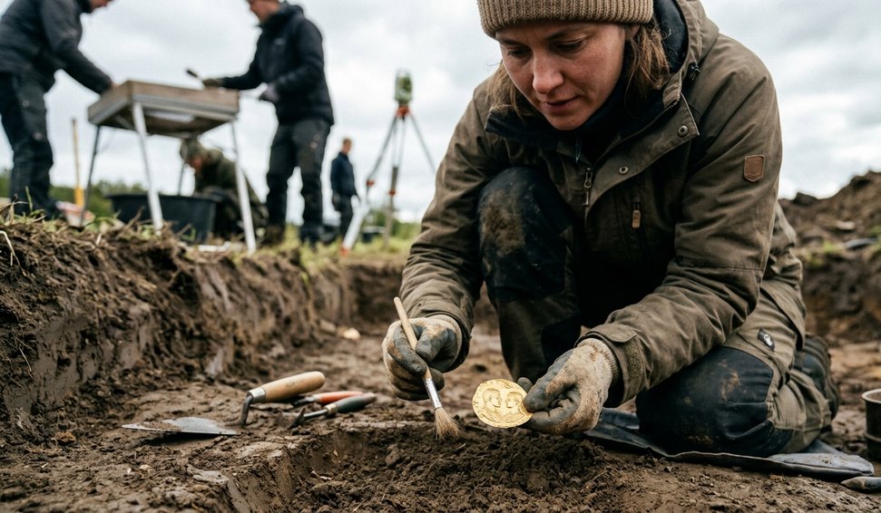 ‼ Desenterram na Noruega antiga folha de ouro com imagem estampada de homem e mulher