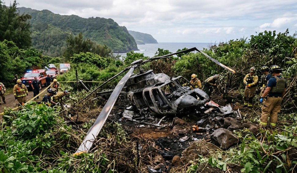 Aeronave caiu na praia de Kalalau, em Na Pali, matando três pessoas e ferindo outras duas; causas do acidente ainda são desconhecidas.