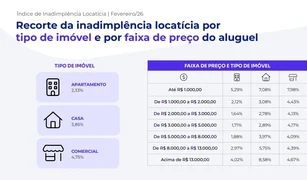 - Imóveis residenciais na faixa de aluguel acima de R$ 13.000 registram maior taxa de inadimplência (8,58%) no período, enquanto a menor foi nos imóveis entre R$ 2 mil a R$ 3 mil (2,78%)