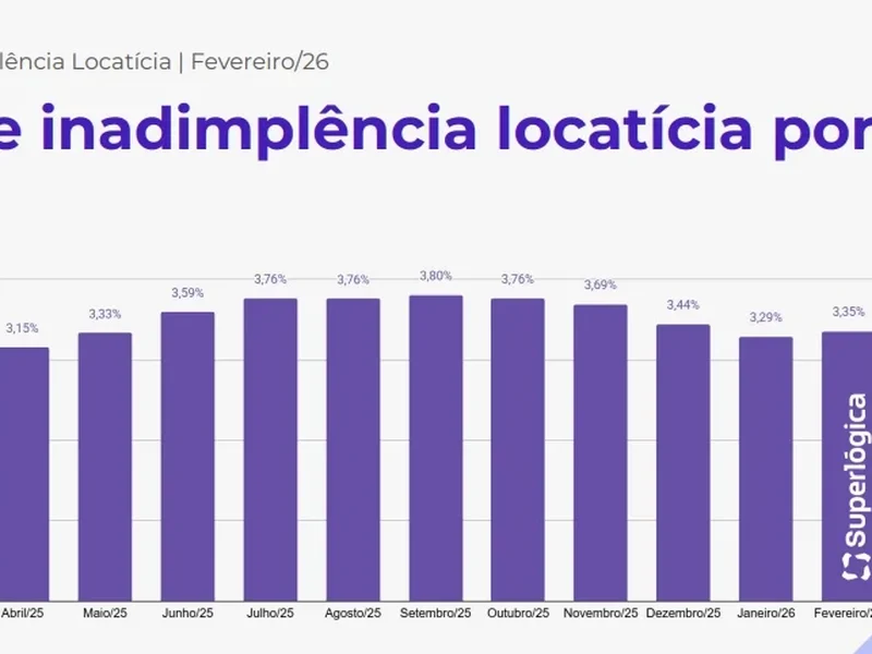 Março de 2026 – A inadimplência de aluguel no Brasil registrou alta, em fevereiro, após quatro meses seguidos em queda, fechando o período com taxa de 3,35% ante 3,29% em janeiro – alta de 0,06 ponto percentual. Na comparação com fevereiro de 2025, quando o índice foi de 3,17%, a inadimplência em fevereiro deste ano apresenta uma alta de 0,18 ponto percentual. Os dados são do Índice de Inadimplência Locatícia (IIL) da Superlógica, principal plataforma de soluções tecnológicas e financeiras para o mercado do morar.