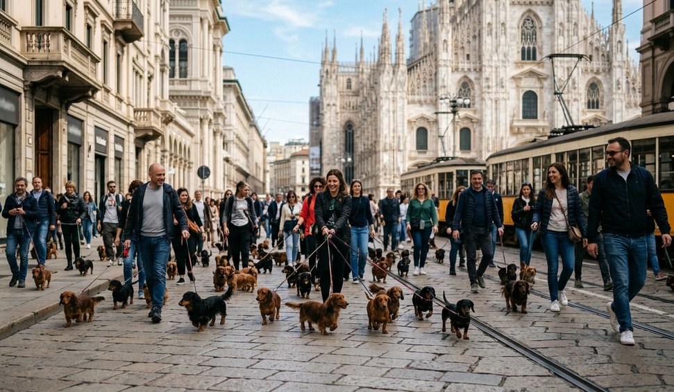 Milão foi palco de um espetáculo canino neste domingo (29), quando a tradicional Sausage Walk Italia transformou as ruas da cidade em uma passarela repleta de dachshunds e seus tutores.