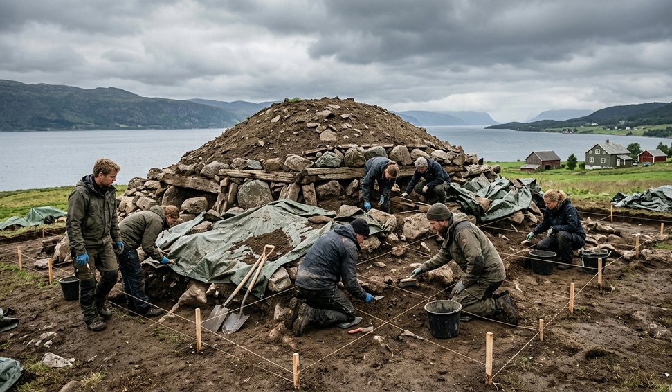 Novo estudo indica que Raknehaugen foi erguido após deslizamento de terra, desafiando teorias sobre sua função como sepultura de elite.