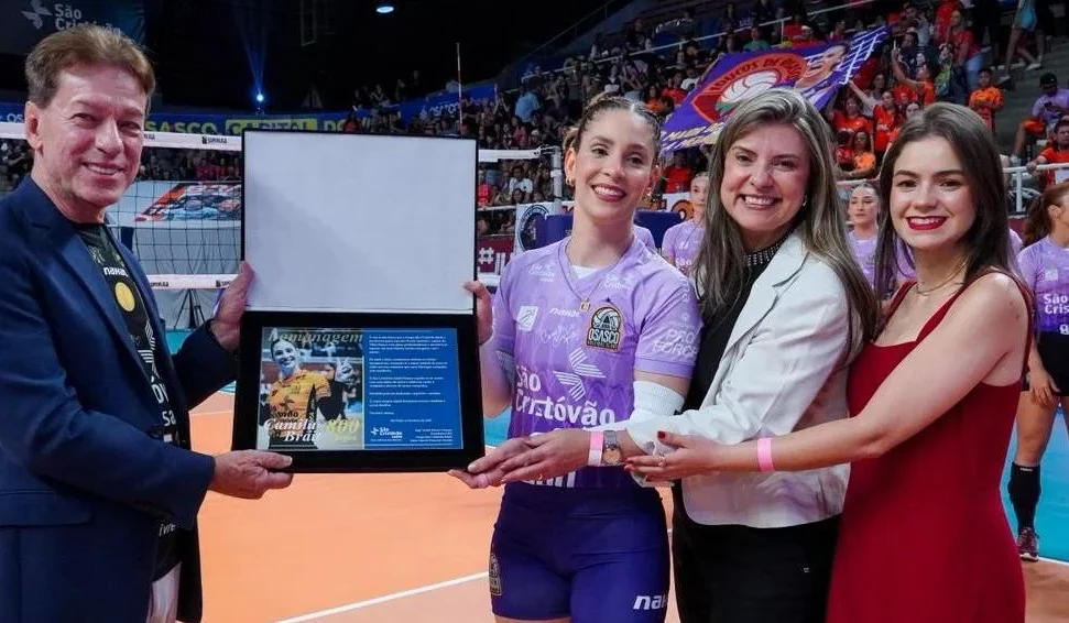 O Ginásio Esportivo Professor José Liberatti, em Osasco, viveu uma noite de celebração em 24 de março. A ocasião marcou a homenagem à capitã e líbero do Vôlei São Cristóvão Saúde/Osasco, Camila Brait, pelos mais de 18 anos dedicados ao clube e pela impressionante marca de 800 jogos com a camisa da equipe. Para completar a festa, Brait e suas companheiras garantiram a permanência no G-3 da Superliga 25/26 ao vencer o Sesi Bauru por 3 sets a 0, com parciais de 25/19, 25/14 e 25/17.