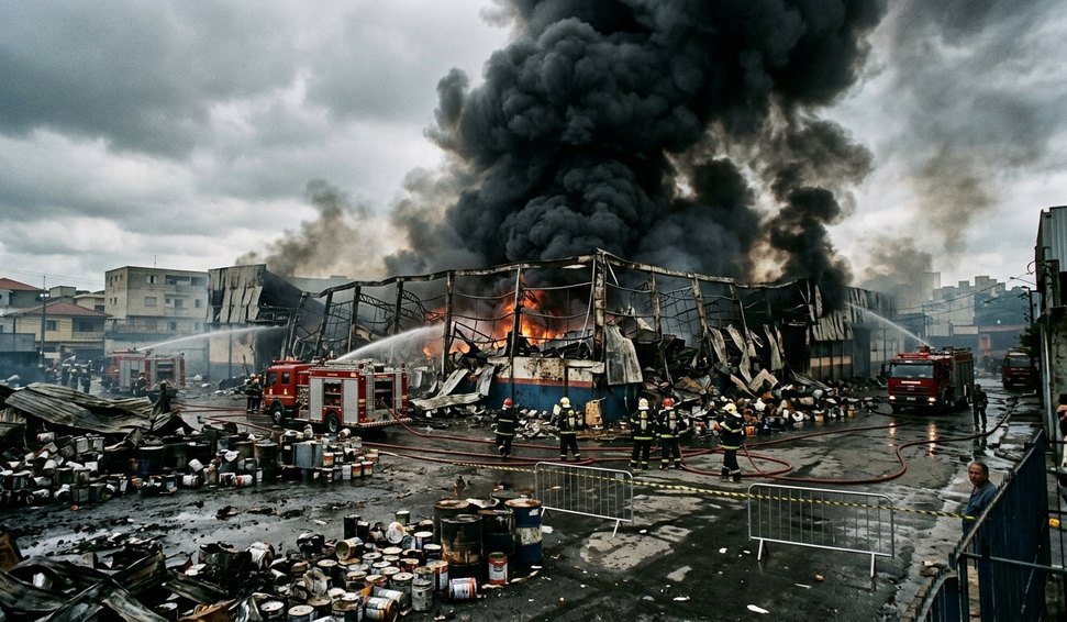Incêndio de grandes proporções atinge distribuidora de tintas em Diadema, na Grande SP