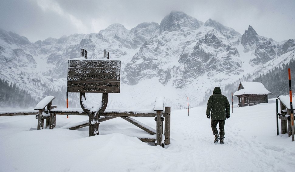 Nevasca intensa cobre parque nacional na Polônia e fecha acesso ao Morskie Oko.
