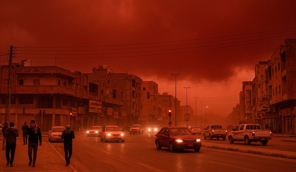 Uma intensa tempestade de poeira deixou o céu da cidade de Tobruk, na Líbia, completamente vermelho nesta semana. Moradores relataram que o fenômeno provocou um cenário impressionante e assustador, afetando o cotidiano local.