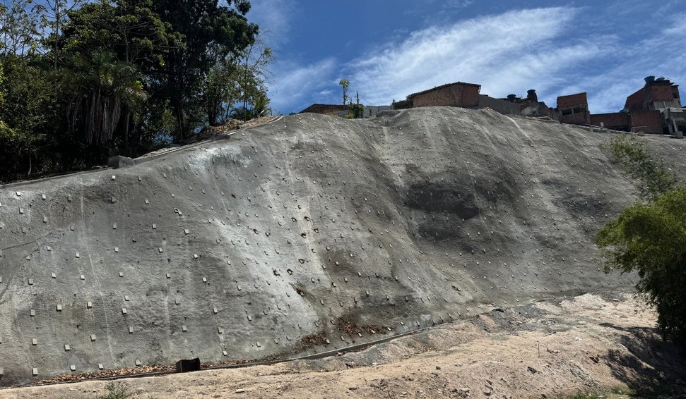 A proteção de encostas, método utilizado em parte das intervenções já realizadas, consiste na impermeabilização do solo por meio da limpeza do talude, aplicação de geocomposto de PVC e finalização com jateamento de argamassa preparada com areia e cimento. Quando necessário, também são instalados dispositivos de drenagem para fortalecer a segurança das estruturas.