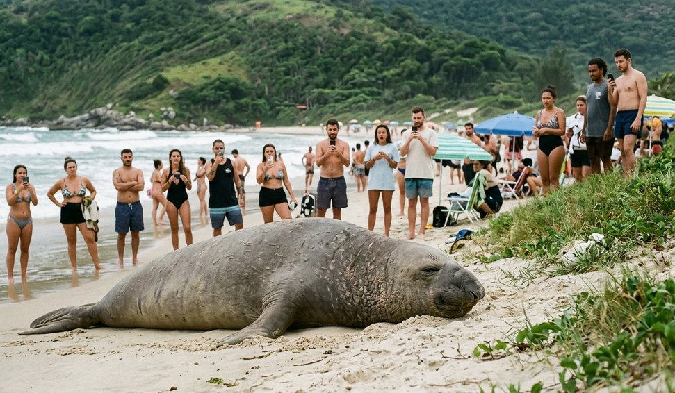 Um elefante-marinho jovem surpreendeu banhistas ao ser avistado descansando na praia de Boiçucanga, em São Sebastião, litoral paulista. O animal, em bom estado de saúde, circulou por outras praias da região antes de escolher o local para repousar.