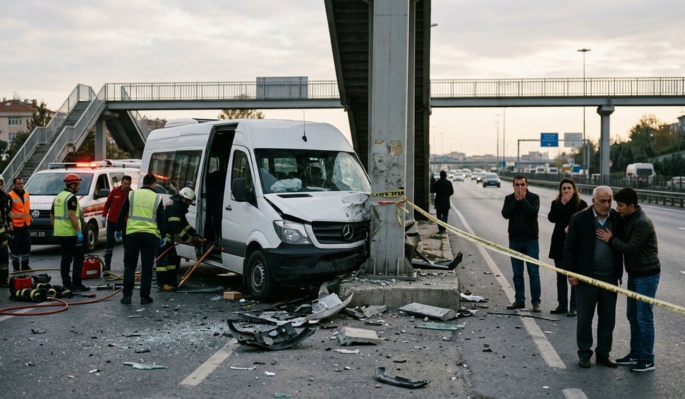 Um grave acidente envolvendo um micro-ônibus de transporte público deixou cinco mortos nesta segunda-feira (24) em Ancara, capital da Turquia. O motorista do veículo perdeu o controle enquanto trafegava por uma rodovia, atingiu uma barreira de proteção e colidiu violentamente contra o pilar de uma passarela para pedestres.