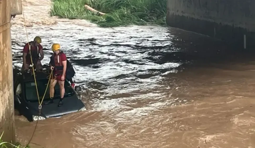 A mulher estava desaparecida desde quinta-feira (4), quando perdeu o controle do veículo por conta do grande volume de chuva. O carro foi levado pela correnteza e caiu na calha do ribeirão, dificultando o resgate.