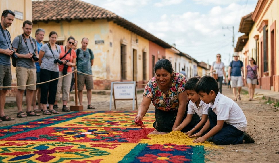No bairro de Sutiaba, em León, Nicarágua, a tradicional produção de tapetes coloridos para a Semana Santa voltou a movimentar a cidade. Centenas de turistas locais e estrangeiros visitaram o local, onde as ruas se transformam em vibrantes expressões de fé e devoção.