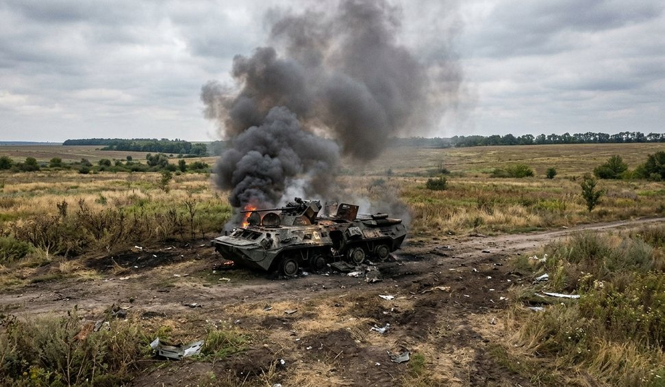 Um blindado das forças ucranianas foi destruído na região de Dnepropetrovsk após ser localizado por um drone kamikaze russo Lancet durante uma operação de vigilância. O drone, equipado com sistema inteligente de guiamento e reconhecimento, perseguiu o veículo em movimento e realizou um ataque preciso.