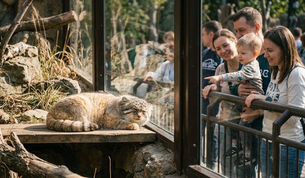 As imagens de Timofey relaxando ao ar livre rapidamente se tornaram populares, reforçando o fascínio que o manul desperta no público do zoológico.