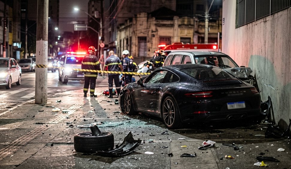 Trabalhadores ficam feridos após colisão com Porsche em alta velocidade em São Paulo