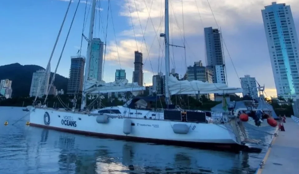 Após percorrer 17 países na expedição Voz dos Oceanos, embarcação de 80 pés volta ao ponto de partida para manutenção e preparo para novas missões em Santa Catarina.