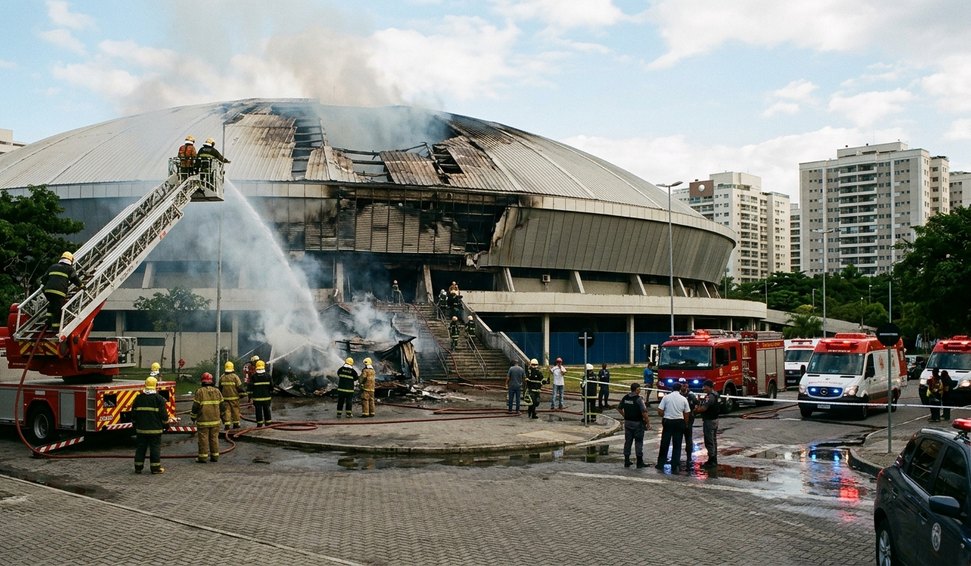 Imagens compartilhadas nas redes sociais mostram a gravidade do incêndio, com chamas altas e fumaça densa saindo da estrutura esportiva. As equipes seguem trabalhando para controlar o fogo e evitar danos maiores ao complexo olímpico.