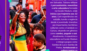 “Naquela época, percebemos um distanciamento das mulheres em relação aos instrumentos de percussão e decidimos mudar essa realidade por meio de vivências exclusivas, desse movimento, surgiu o Maracatu Yá Dandara, liderado por Dani Lins, que transformou o tambor em um território de afirmação política e artística, explicou.