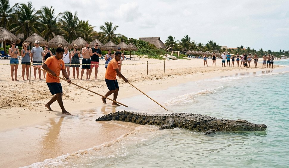 Visita inesperada: crocodilo de 3 metros invade praia no México