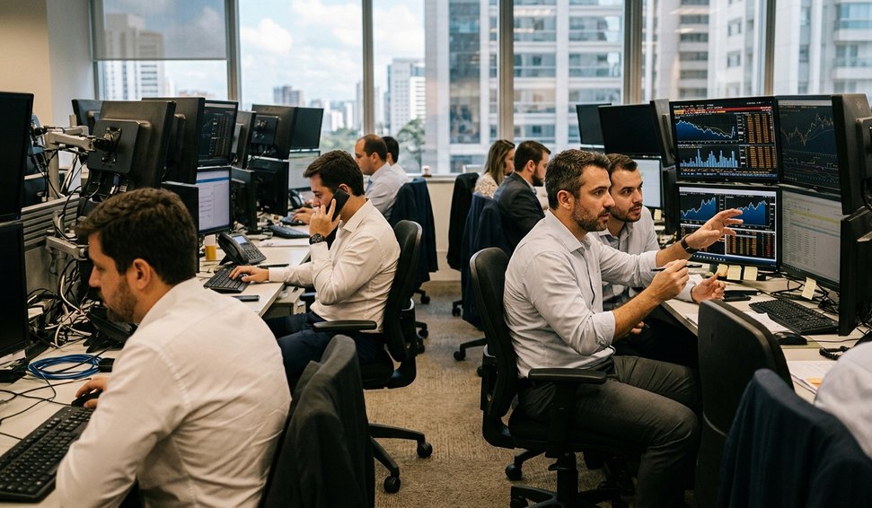 No radar dos investidores está o evento do Banco Central, realizado nesta manhã, com a participação do presidente Gabriel Galípolo e de diretores da instituição. Além disso, os leilões de LTN e NTN-F, marcados para as 11 horas, também atraem atenção do mercado.