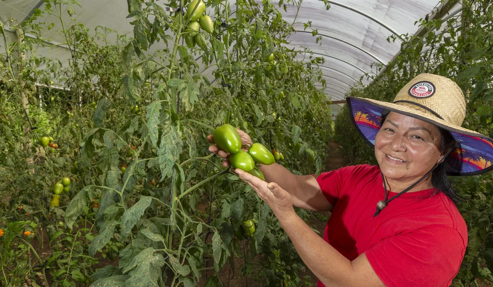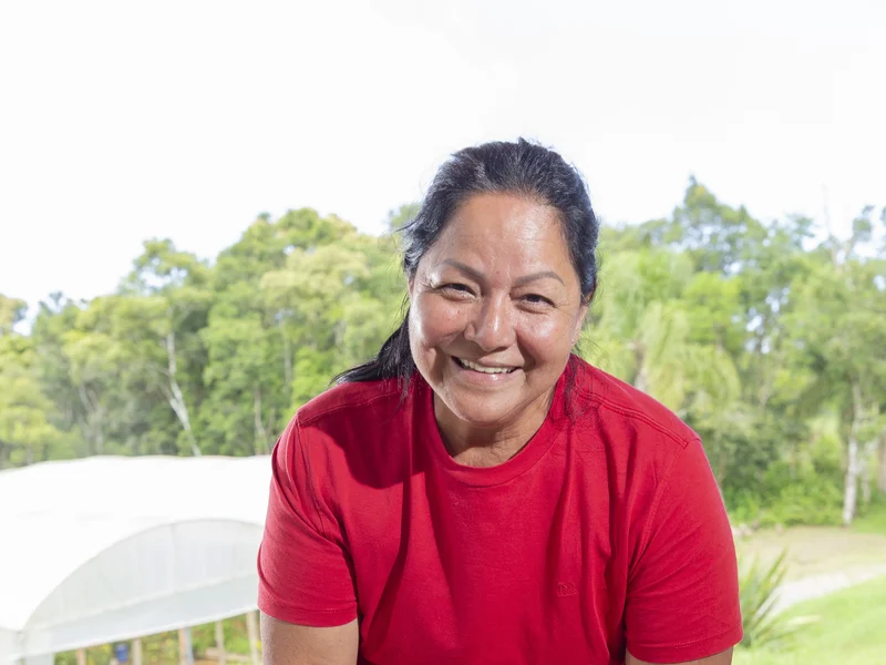 Edna Aparecida Gomes do Reis produz alimentos orgânicos certificados há seis anos numa propriedade rural localizada em Quatro Barras, na região metropolitana de Curitiba. Na área de cinco hectares, optou pela diversidade de cultivos: produz tomate, hortaliças, maracujá e ervas medicinais, como o chá verde. A produtora já chegou a colher dois mil quilos de tomate orgânico na safra de 2025 e este ano, com a mudança da variedade da hortaliça-fruto e muitos testes de cultivo, pretende colher seis mil quilos.