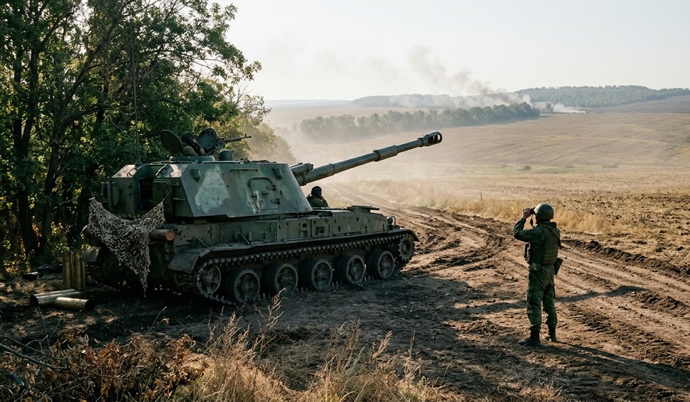 Artilharia russa utiliza veículos Akatsiya para repelir avanço de tropas adversárias na região estratégica de Zaporozhie.