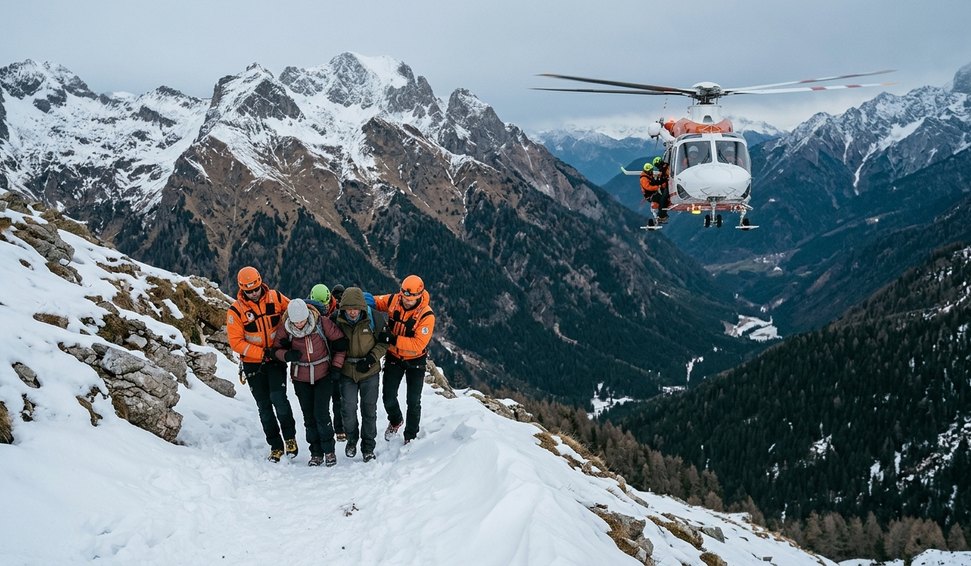 Imagens divulgadas nas redes sociais mostram o momento do resgate, realizado pela Unidade de Montanha da Guarda de Finanças italiana, com apoio de equipes especializadas em áreas de difícil acesso.