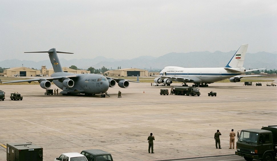 Em um episódio raro e curioso, aeronaves dos Estados Unidos e do Irã foram flagradas ocupando simultaneamente o mesmo pátio na base aérea de Nur Khan, no Paquistão.