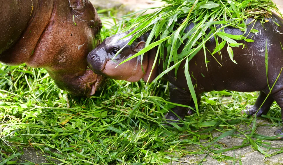 Momento de ternura: Um bebê hipopótamo pigmeu foi registrado brincando alegremente ao lado da mãe enquanto o tanque era abastecido, em uma cena que conquistou internautas e se tornou viral.