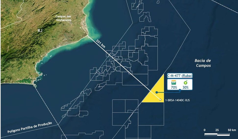 A Petrobras confirmou a identificação de hidrocarbonetos no pré-sal da Bacia de Campos. A descoberta ocorreu no bloco CM-477, por meio do poço exploratório perfurado no Setor SC-AP4 da região. Segundo comunicado da companhia, o poço 1-BRSA-1404DC-RJS está localizado a 201 km da costa do estado do Rio de Janeiro, em profundidade d'água de 2.984 metros .