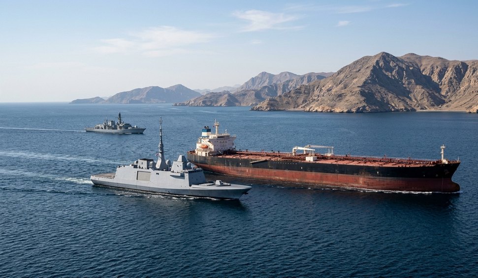 França e Reino Unido vêm articulando, nas últimas semanas, uma operação de escolta para navios-tanque e porta-contêineres, diante da escalada de obstáculo no Oriente Médio e do risco à segurança marítima na rota estratégica.