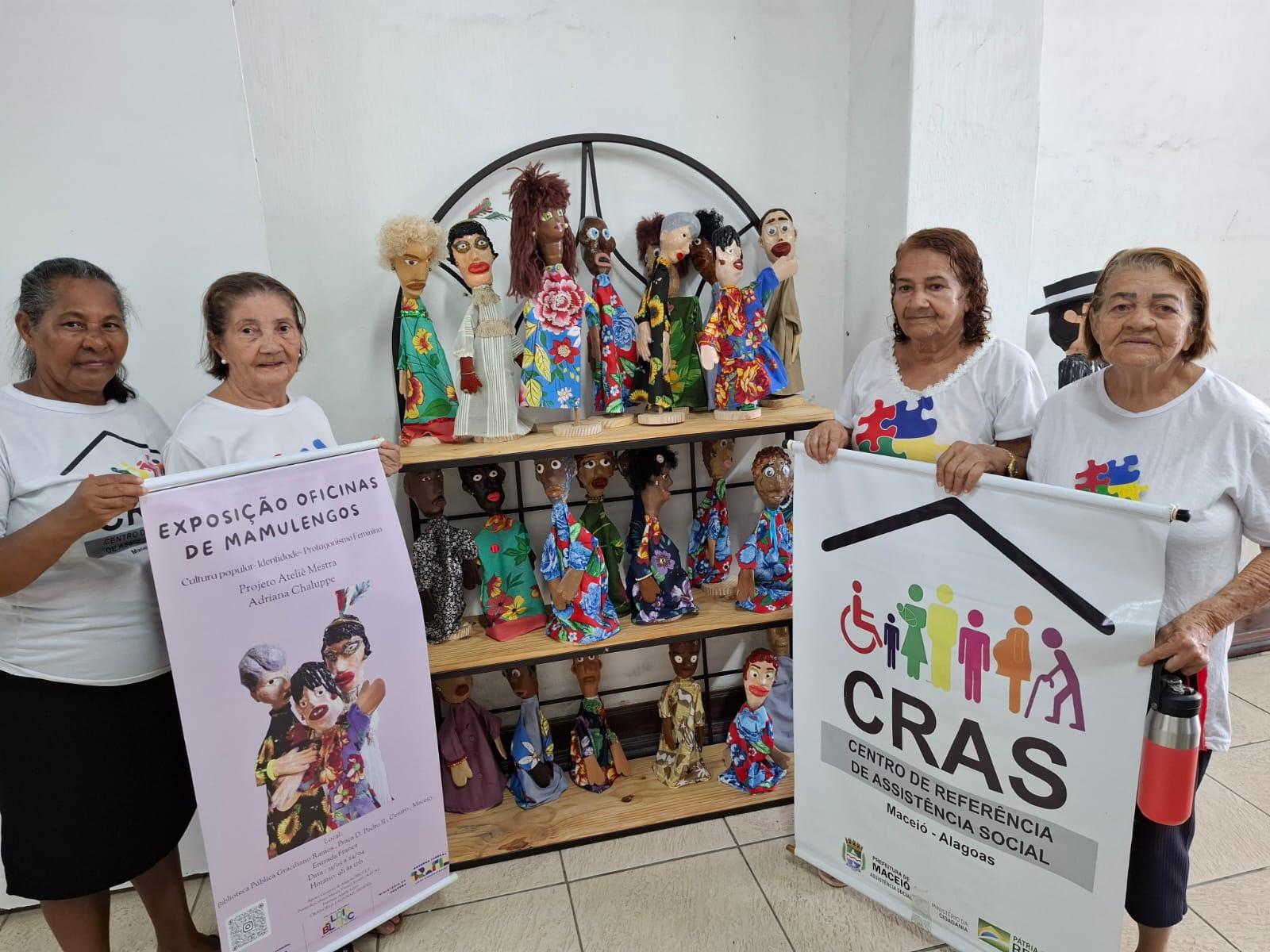 Idosas do Serviço de Convivência e Fortalecimento de Vínculos(SCFV) do Centro de Referência de Assistência Social(Cras) Área Lagunar estão participando do projeto Oficinas de Mamulengos e expondo seus trabalhos na Biblioteca Graciliano Ramos, no Centro de Maceió. A exposição, que acontece até o dia 24 de março, reúne mamulengos feitos em oficinas conduzidas pela a mestra artesã e bonequeira Adriana Chaluppe.