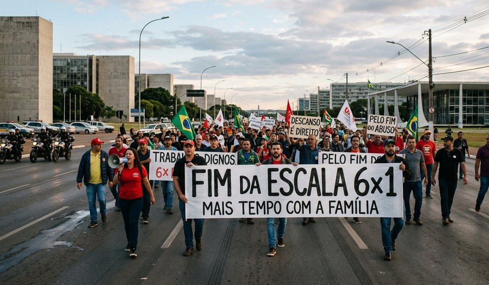 Trabalhadores pressionam pelo fim da escala 6x1 em Brasília