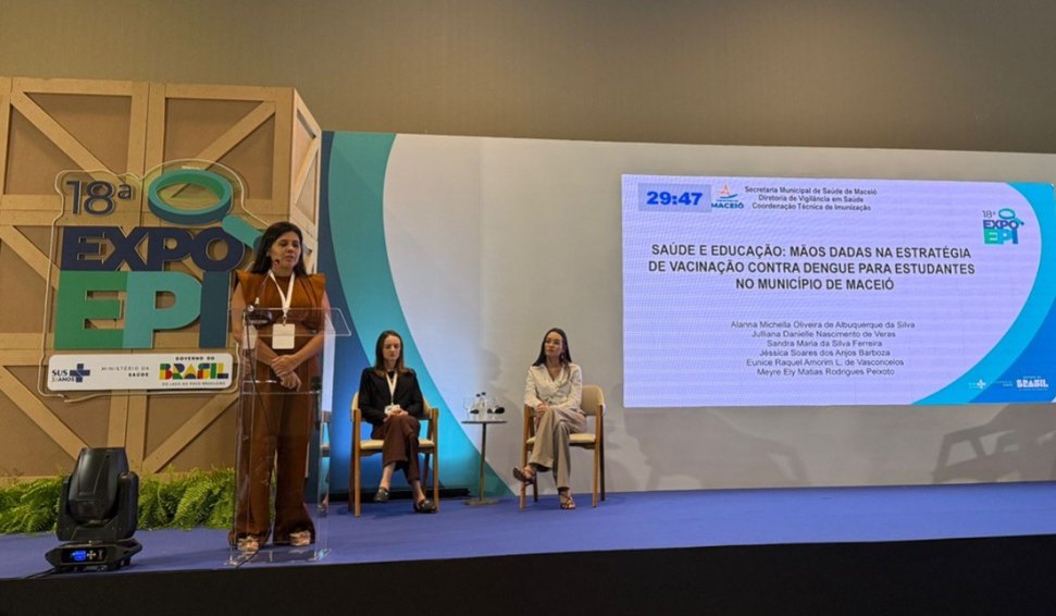A Secretaria de Saúde de Maceió (SMS) esteve presente na 18ª Mostra Nacional de Experiências Bem-Sucedidas em Epidemiologia, Prevenção e Controle de Doenças (Expoepi) 2026, realizada em Brasília (DF). Na ocasião foi apresentada, uma experiência exitosa desenvolvida no município voltada à ampliação da cobertura vacinal contra a dengue em crianças da rede municipal de ensino.