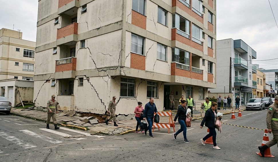 Parte de um edifício residencial cedeu no centro de Itajaí, em Santa Catarina, na noite da última quarta-feira (15), levando à evacuação imediata dos moradores e à interdição total do imóvel. De acordo com o Corpo de Bombeiros, o prédio apresentou um rebaixamento estrutural estimado entre 30 e 40 centímetros. As causas e a extensão do deslocamento ainda estão sob investigação.