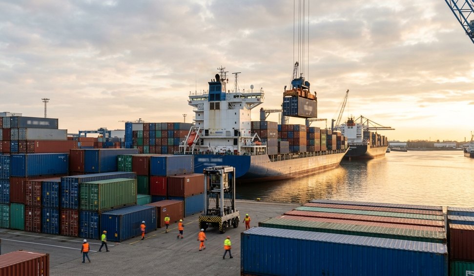 No resultado sem ajustes, o superávit comercial da zona do euro foi de 11,5 bilhões de euros em fevereiro, valor que representa aproximadamente metade do superávit de 23,1 bilhões de euros registrado no mesmo mês de 2025.