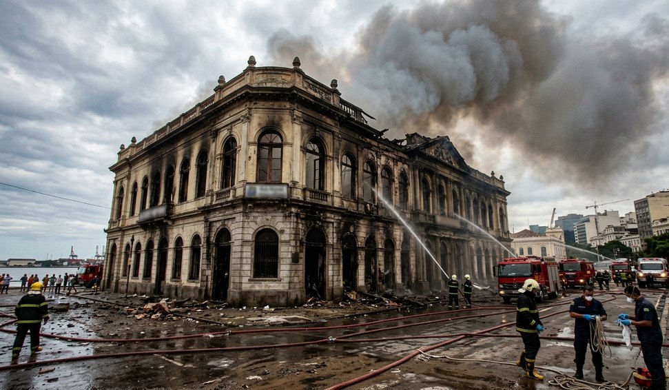 Incêndio atinge edifício histórico na Praça Mauá, no RJ
