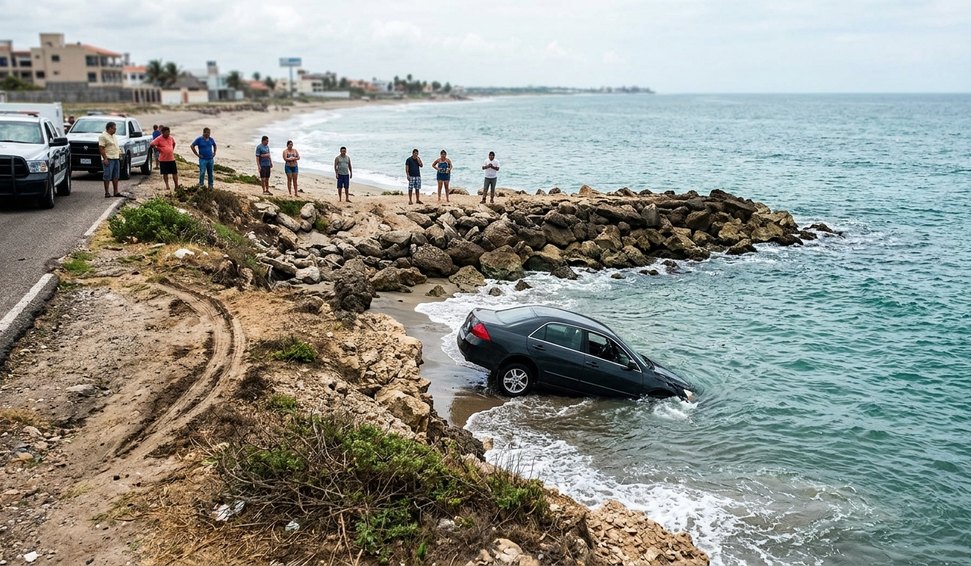 Motorista perde controle e carro cai no mar em Veracruz, no México