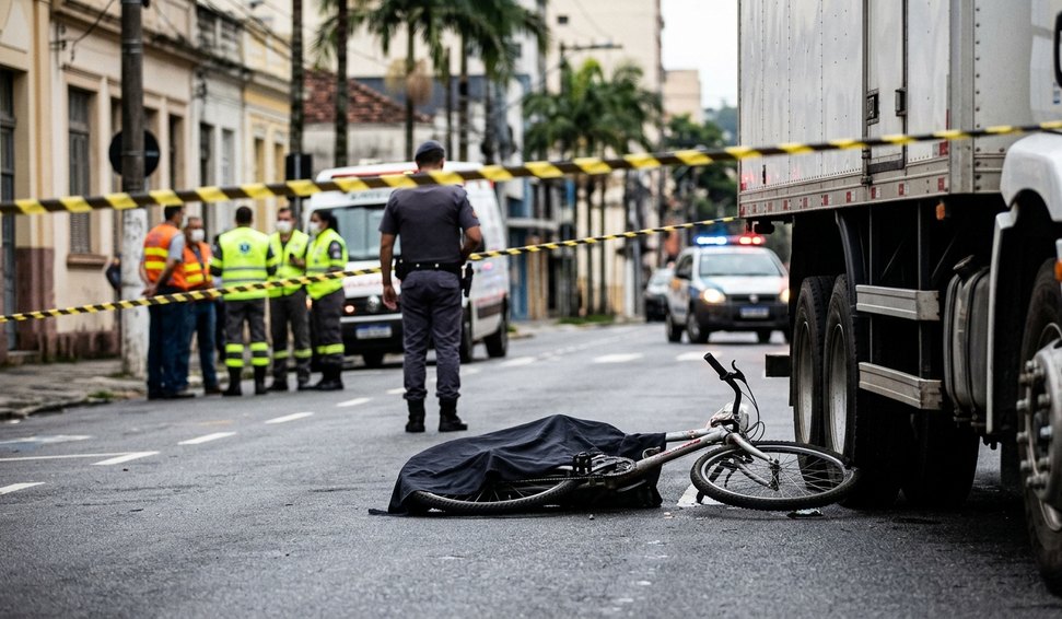 Um ciclista morreu após ser atropelado por um caminhão na manhã desta terça-feira (21), em Santos, litoral de São Paulo. O acidente ocorreu no cruzamento das avenidas Coronel Joaquim Montenegro e Governador Mário Covas, no bairro Estuário.