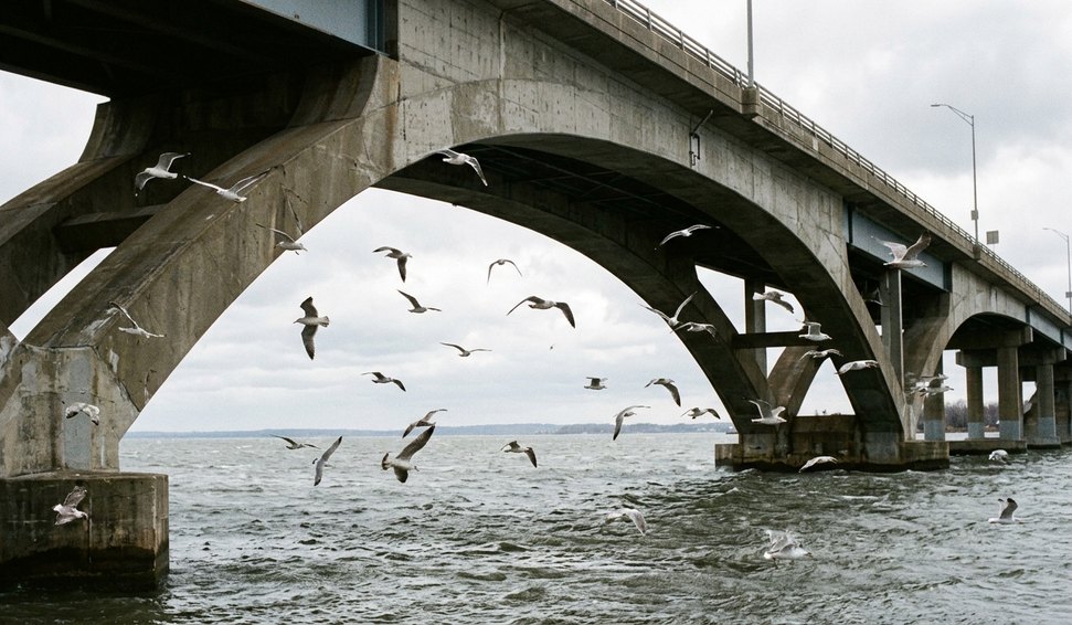 Um grupo de gaivotas chamou a atenção ao ser registrado aproveitando as correntes de vento sob uma ponte, em uma cena que encantou internautas.