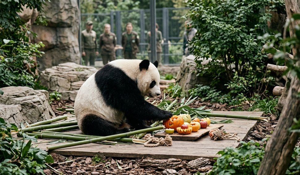 Iriska desfruta de café da manhã especial no Zoológico de Moscou