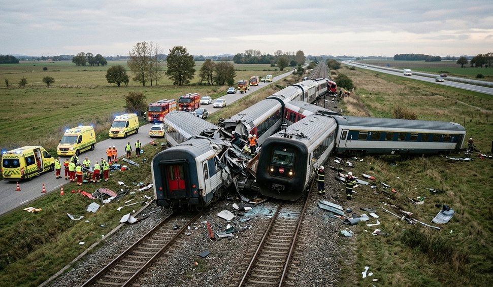 Colisão frontal entre trens na Dinamarca deixa vários feridos graves