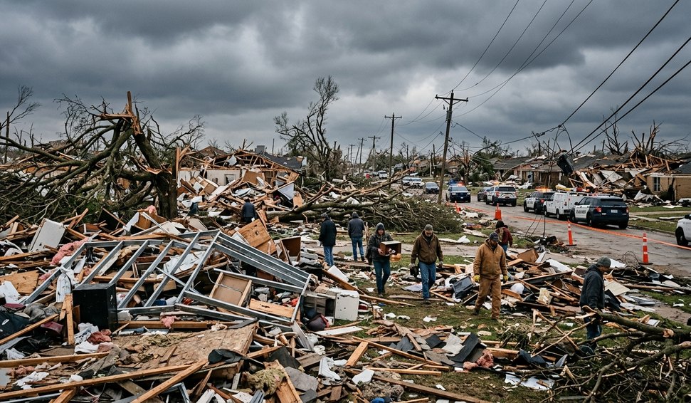 Tempestade arranca telhados, derruba postes e destrói casas em Enid; autoridades avaliam danos e temem novos tornados